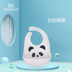 YeeHoO 英氏 婴儿围兜宝宝围嘴儿童吃饭超软辅食硅胶口水饭兜防脏防水神器 白色熊猫