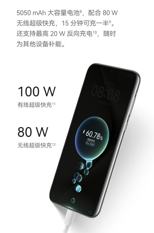内置5050mAh电池,支持100W有线超级快充以及80W华为无线快充,并提供18W有线反充以及20W无线反充。配备USB3.1速率Type-C接口,支持DP1.2视频输出。支持北斗卫星消息,可自由编辑,支持图片拍摄。灵犀通信,灵犀网络配合AI算法,带来更出色的信号表现。升级HarmonyOS 4.2 系统,支持AI隔空操控、AI信息保护、AI修图大师、AI云增强等多种功能。