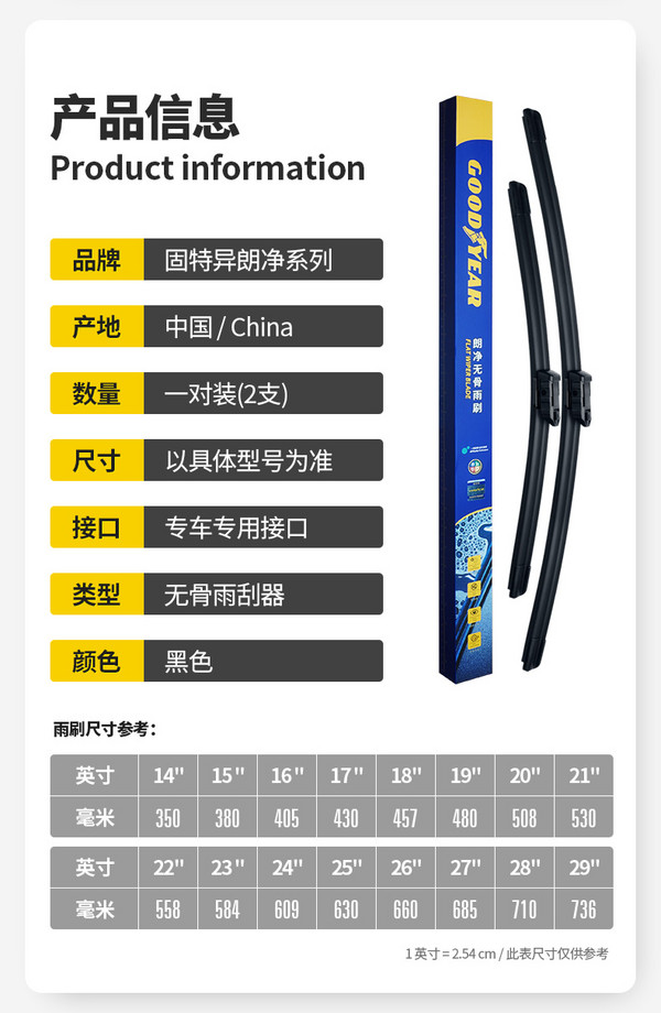 PLUS会员:GUIXINZU 贵鑫族 王者系列雨刷/一对 留言具体车型和年份