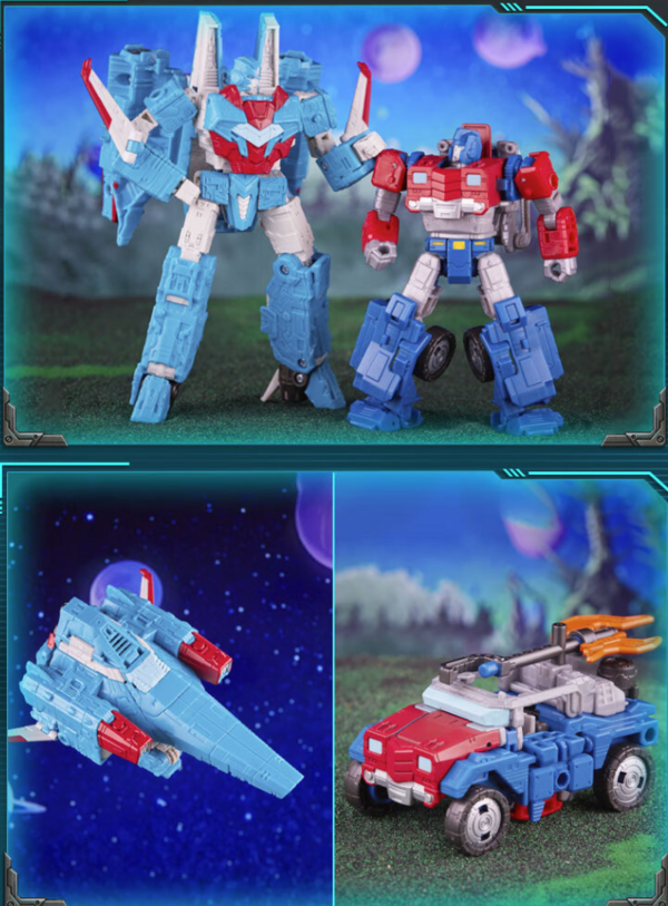 震荡波是一位善良的参议员,而奥利安·派克斯在塞伯坦档案馆担任资料员,为庆祝塞伯坦战争前史他们以组合套装的形式回归。震荡波整体涂装以天空蓝为主,凸显其空中战士风采;奥利安·派克斯涂装以红色和蓝色为主,载具形态下车顶装载武器,造型炫酷。
