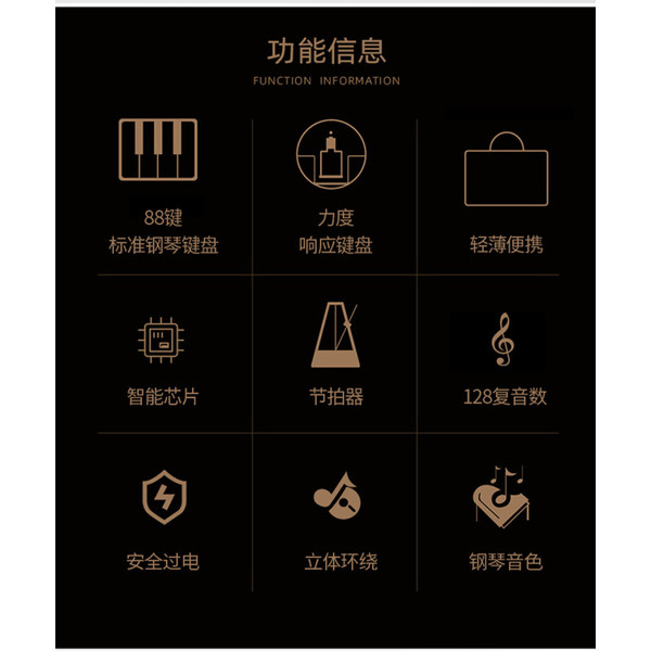 专业十级考级用琴,媲美真钢手感音色,轻松学钢琴,性能更强劲。键盘升级,重锤手感,优化重锤击弦结构,手感更好,感性更灵敏,88键比照三角真钢逐重锤,触感轻盈美妙。可连接耳机开启静音模式,即可零负担,不担忧扰民,可享受一个人的音乐,单耳机模式设计便与家人一起练习。