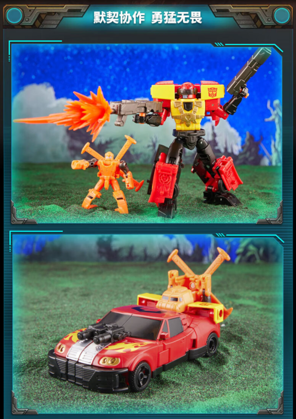 设计灵感来源于动画《变形金刚:雷霆舰队》,激射和迷你金刚摇晃是年轻战士的代表,双人默契配合,在战斗中变现出色。激射下翻式面罩设计,还原人物设定,翻转后背的轮轴即可变为肩扛式火箭炮,提高火力值。摇晃造型小巧,机械刻线精致细腻,直升机形态可搭载于激射车身后。