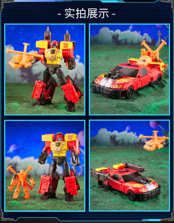 套装附带2把爆能抢、1个双筒引擎火焰炮、6个火焰效果件,可组装成不同的造型,把玩乐趣十足。激射可通过21步骤从机器人状态变形成赛车形态,摇晃可通过8步骤从机器人状态变形成直升机形态。