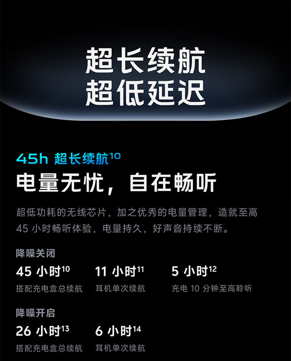 传输协议方面,vivo TWS 4支持LDAC、aptX Adaptive,LE Audio,骁龙畅听技术认证,游戏44ms低延迟,单耳净重仅约4.8克,另有高达45小时续航,11小时单次畅听。