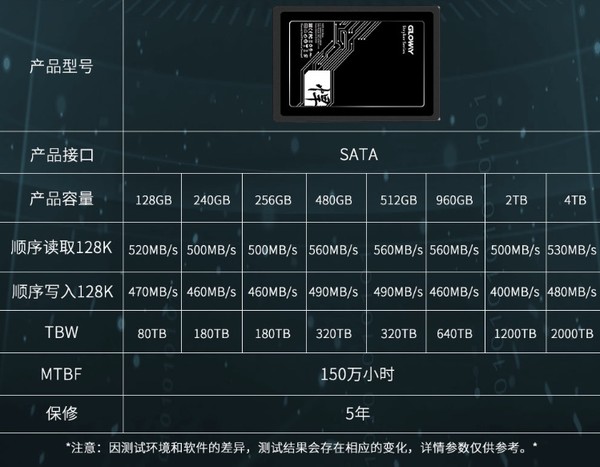 这款固态硬盘支持TRIM、拥有全局磨损平衡算法、支持动态电源管理、支持DEVSLEEP,严选3D NAND颗粒,广泛兼容。