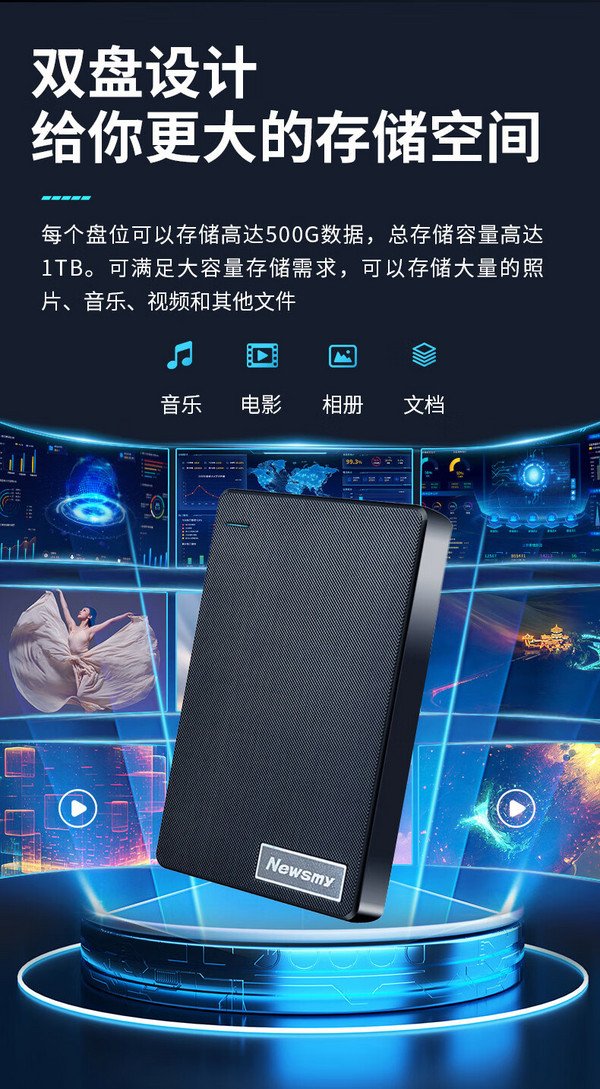 EAGET 忆捷 G20-PRO移动机械移动硬盘双盘位1TB大容量高速电脑笔记本