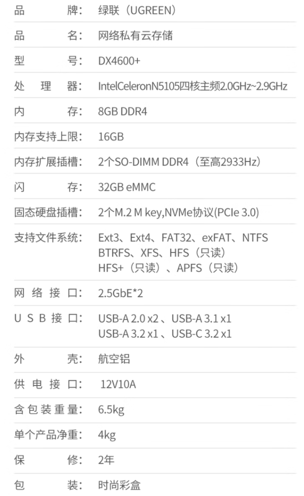 机械硬盘插槽:支持20T*4 M。2插槽:支持4T*2 外部存储扩容:支持硬盘柜、U盘等。
