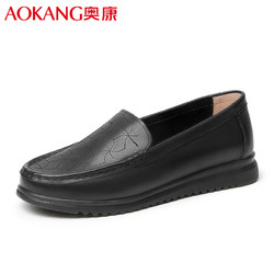 AOKANG 奥康 女鞋妈妈鞋浅口透气中老年鞋女舒适软底套脚豆豆鞋牛皮休闲单鞋