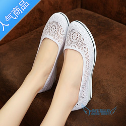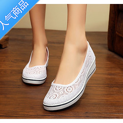SunTek 夏季女式网鞋白色透气护士鞋坡跟上班工作布鞋美容鞋黑色高跟女鞋