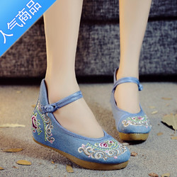 SunTek 百搭老北京高跟布鞋民族风绣花鞋牛筋底汉服圆头浅口扣带舞蹈单鞋