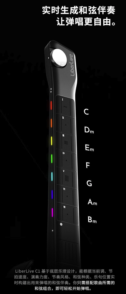 LiberLive C1融合了强大的和弦合成器,交互乐谱,自动鼓机并支持近百种伴奏风格,让你用最自由随性的方式,演奏出乐队般丰富立体的弹唱效果。