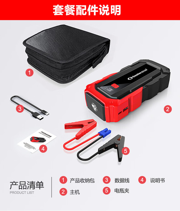 soulor 小能人 汽车应急启动电源 45800加强版+智能夹+收纳包