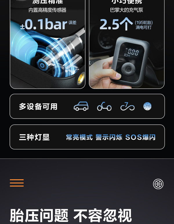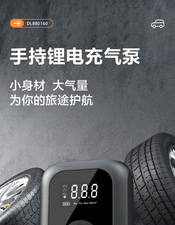 移动端、京东百亿补贴:NEWO 沃橙 车载充气泵汽车轮胎数显打气泵打气筒自行车电动车便携无线充气宝