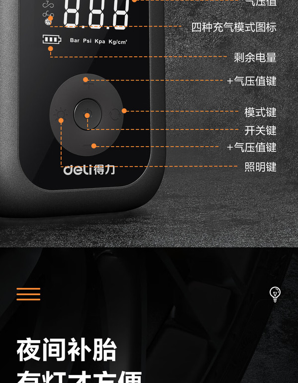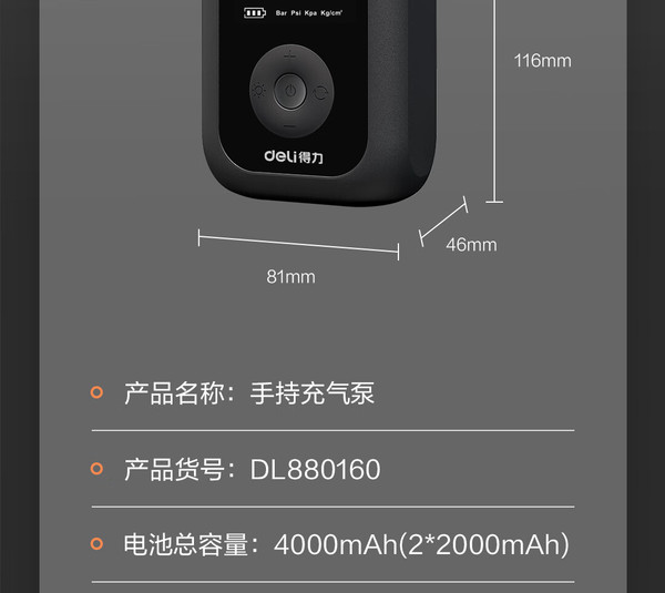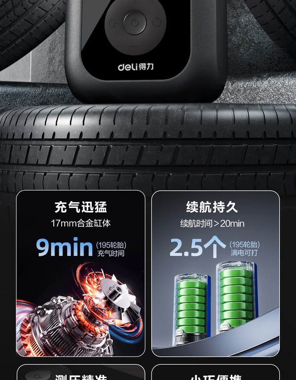 移动端、京东百亿补贴:deli 得力 DL8060 车载充气泵